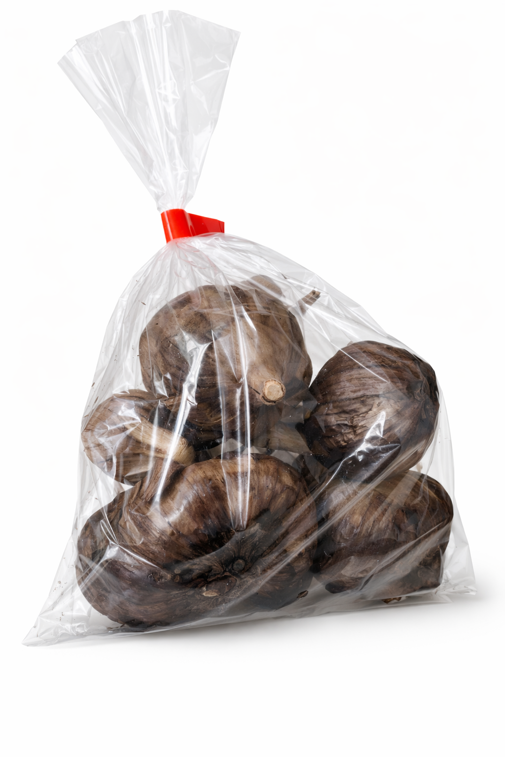 Czarny czosnek to produkt powstały w wyniku długotrwałej fermentacji zwykłego białego czosnku w kontrolowanych warunkach temperatury i wilgotności. Proces ten trwa zwykle od kilku tygodni do kilku miesięcy. W jego trakcie ząbki czosnku zmieniają kolor na czarny, stają się miękkie i przypominają konsystencją suszone śliwki. Fermentacja sprawia, że ostrość i charakterystyczny zapach surowego czosnku niemal całkowicie zanikają. W zamian pojawia się słodko-kwaśny smak, często porównywany do melasy, balsamico lub sosu sojowego. Czarny czosnek ma też subtelne nuty karmelu, lukrecji i suszonych owoców. Dzięki temu znajduje szerokie zastosowanie w kuchni fusion oraz w daniach fine dining. Świetnie komponuje się z mięsem, rybami, serami i warzywami. Można go także dodawać do sosów, past, zup i dań wegańskich.
