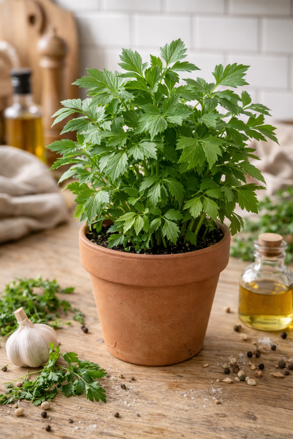 Świeży lubczyk to aromatyczne zioło o intensywnym, korzenno-selerowym zapachu i smaku. Jego liście są ciemnozielone, błyszczące i pierzaste, przypominające natkę pietruszki, ale o mocniejszym aromacie. Doskonale nadaje się do zup, sosów, mięs i dań warzywnych, dodając im głębi i pikantności. Lubczyk ma również właściwości lecznicze – wspomaga trawienie i działa moczopędnie. Najlepiej stosować go świeżo posiekany tuż przed podaniem potrawy.