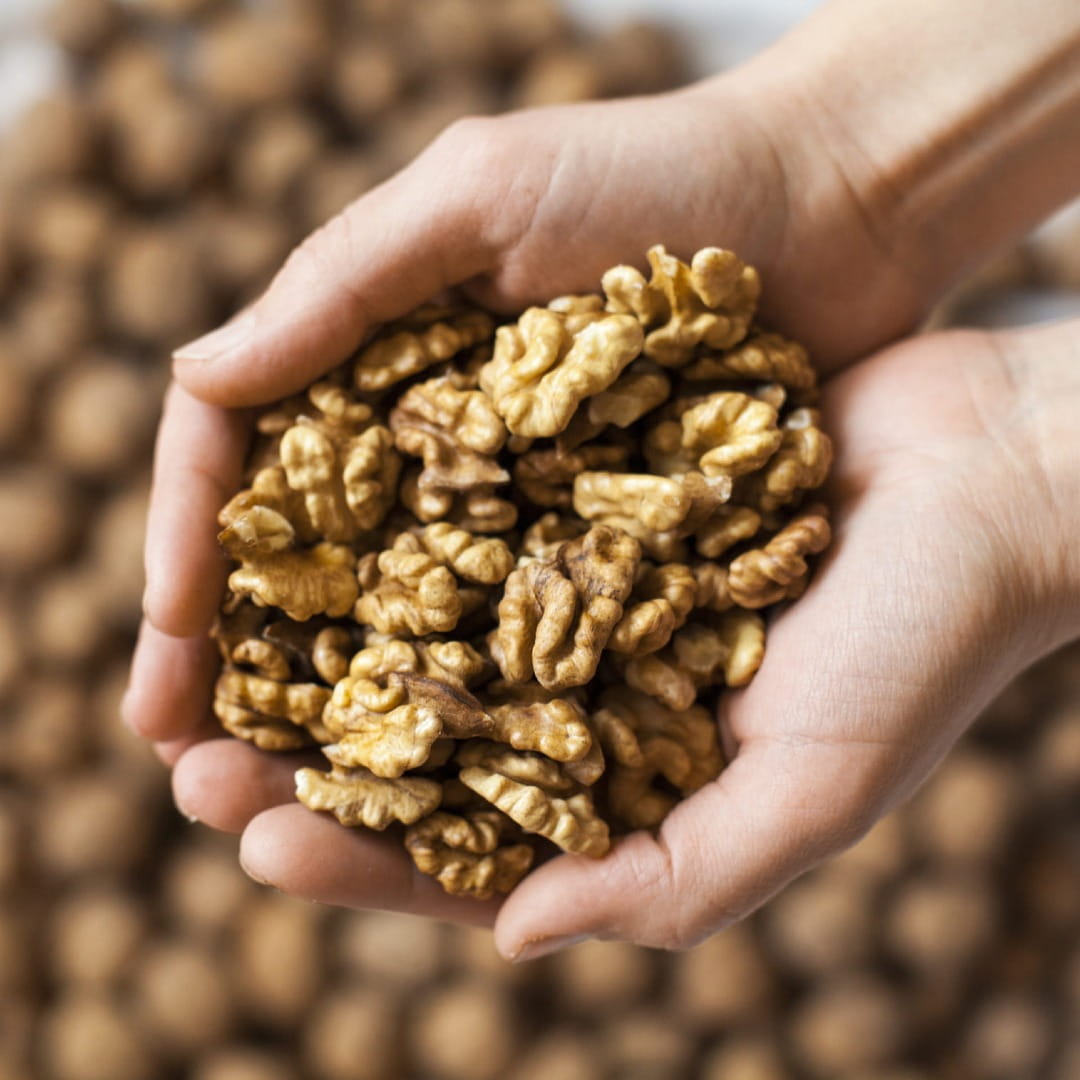 Orzechy włoskie są doskonałym źródłem białka, błonnika, witamin (w tym głownie witaminy E - czyli witaminy młodości). Ponadto zawierają wiele składników mineralnych - w tym magnez, cynk, potas, wapń i żelazo. Orzechy włoskie są bogate w prozdrowotne tłuszcze. Regulują one pracę układu krążenia oraz są doskonałym paliwem dla mózgu. Docenią je także miłośnicy diety KETOGENICZNEJ.
