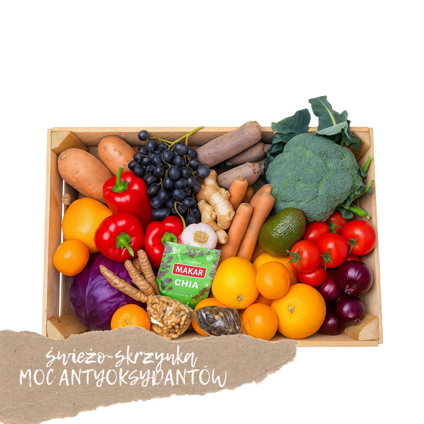 Poczuj siłę natury z naszą Świeżo-skrzynką MOC ANTYOKSYDANTÓW. To kompozycja warzyw, owoców oraz innych produktów, które wspierają odporność i opóźniają procesy starzenia. Znajdziesz w niej produkty bogate w witaminę C, beta-karoten i polifenole. Słodkie mandarynki, soczyste winogrona i buraki tworzą smak pełen energii. Do tego dorzuciliśmy marchew i czerwoną paprykę dla jeszcze większej mocy. Każdy składnik został starannie wybrany od sprawdzonych dostawców. Ta skrzynka to idealny sposób na naturalne wsparcie organizmu każdego dnia. Sprawdzi się w koktajlach, sałatkach i zdrowych przekąskach. Wszystko świeże, kolorowe i pełne życia – prosto pod Twoje drzwi. Zamów już dziś i pozwól, by natura zadbała o Twoje zdrowie od środka!